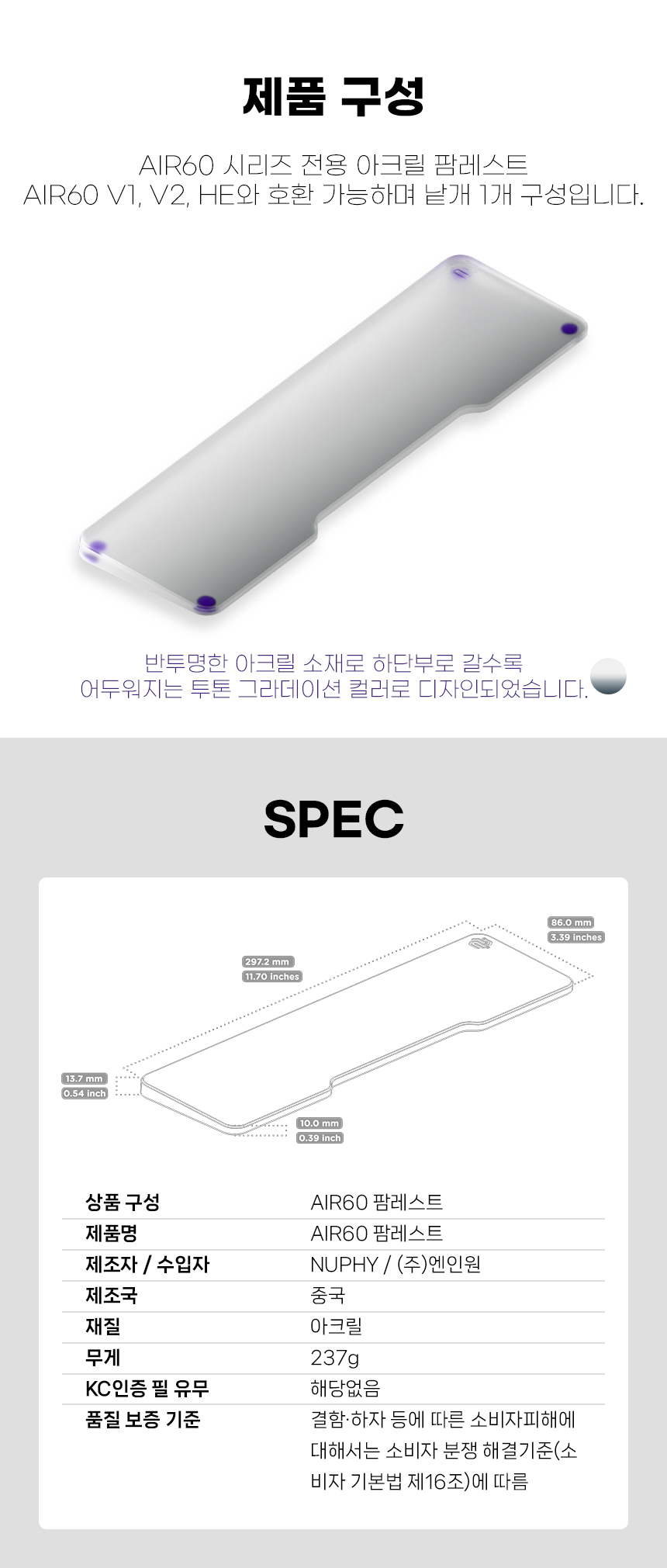 air60 손목 받침대 아크릴 팜레스트 / air60wrw