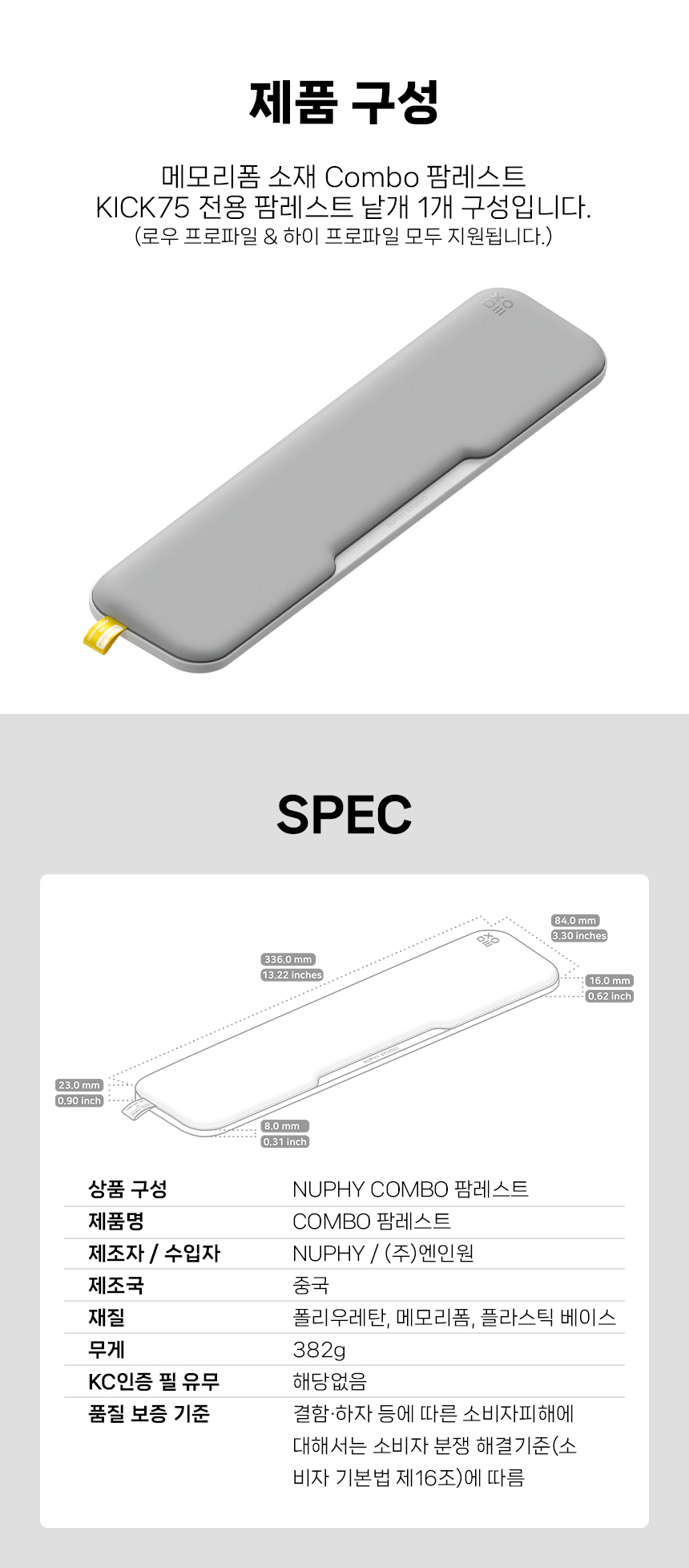 KICK75 콤보 메모리폼 팜레스트 / KICK75 콤보 메모리폼 팜레스트
