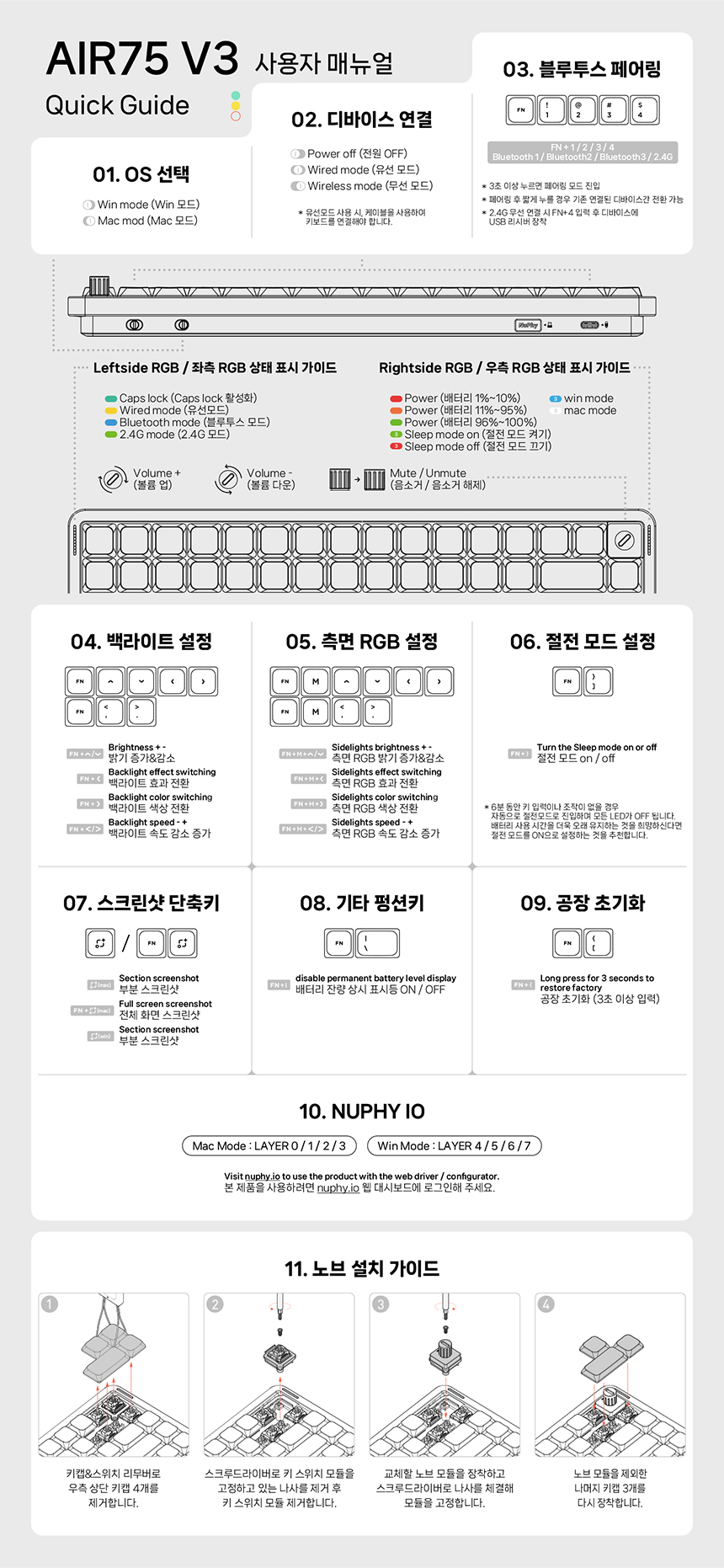 유선, 무선, 블루투스, 노브, 3대 페어링, 핫스왑, 퀵스왑, 키변경, 전용 대시보드,로우 프로파일, LP, PBT, 이중사출, 한영각인,슬림, 텐키리스, LED, 백라이트