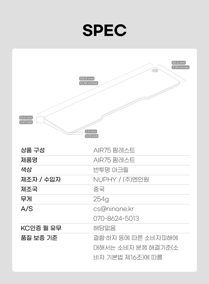 AIR75 키보드 손목 받침대 아크릴 팜레스트 / air75wrw